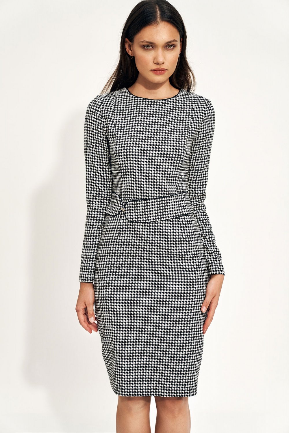 This timeless piece radiates sophistication with its subtle black tones. For a classic yet effortless look, this figure-defining knee-length pencil dress takes centre stage. Long sleeves and a waist accent complete this ensemble, fastened with a hidden zipper. Get ready for a night out in confidence!